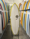 Comments: Yellow and tan fade rails with black pinline. Cheetah Print HIC logo. Twin + trailer fin placement