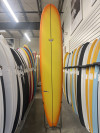 Features medium/lower rocker, flat bottom through the board with vee in the tail. Regular longboard outine.